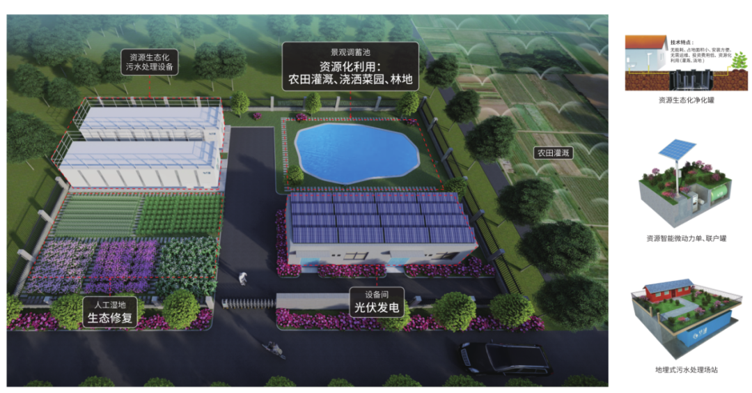 同時,因地制宜采用太陽能、風能、風光互補等清潔能源,通過提高污水治理綜合能效,采用低碳生態化污水處理技術,達到農村生活污水治理領域“碳中和”目標,實現污水消納和水資源的循環利用。